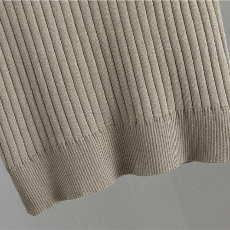 The open-stitch long cardigan adds texture and dimension, offering a chic layering option. Paired with wide-leg pants for comfort and style, it exudes understated sophistication. The sleeveless turtleneck adds a sleek, modern touch, completing the ensemble for effortless day-to-night transition.